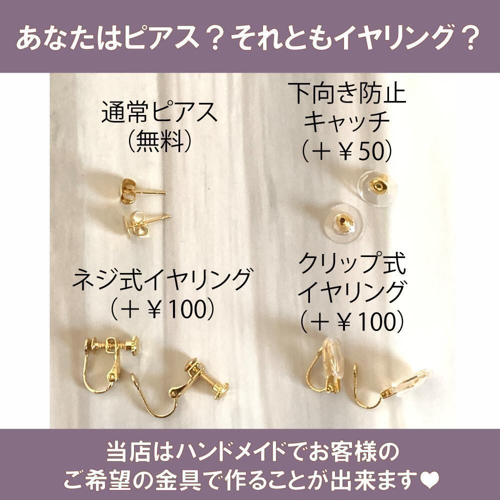 有料でネジ式イヤリング、クリップ式イヤリング、下向き防止キャッチあります。