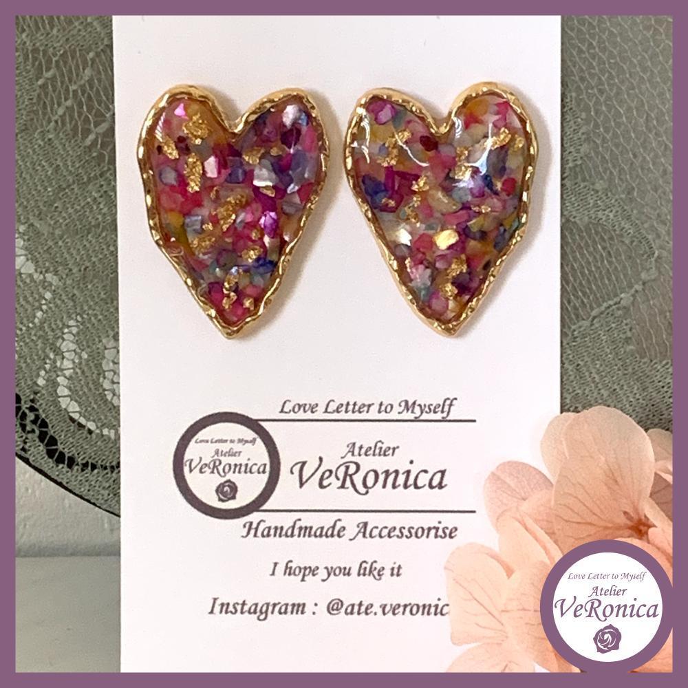 ハートのバカンスピアス ハンドメイド ゴールド レジン ハート シェル ピアス ハンドメイド ベロニカ