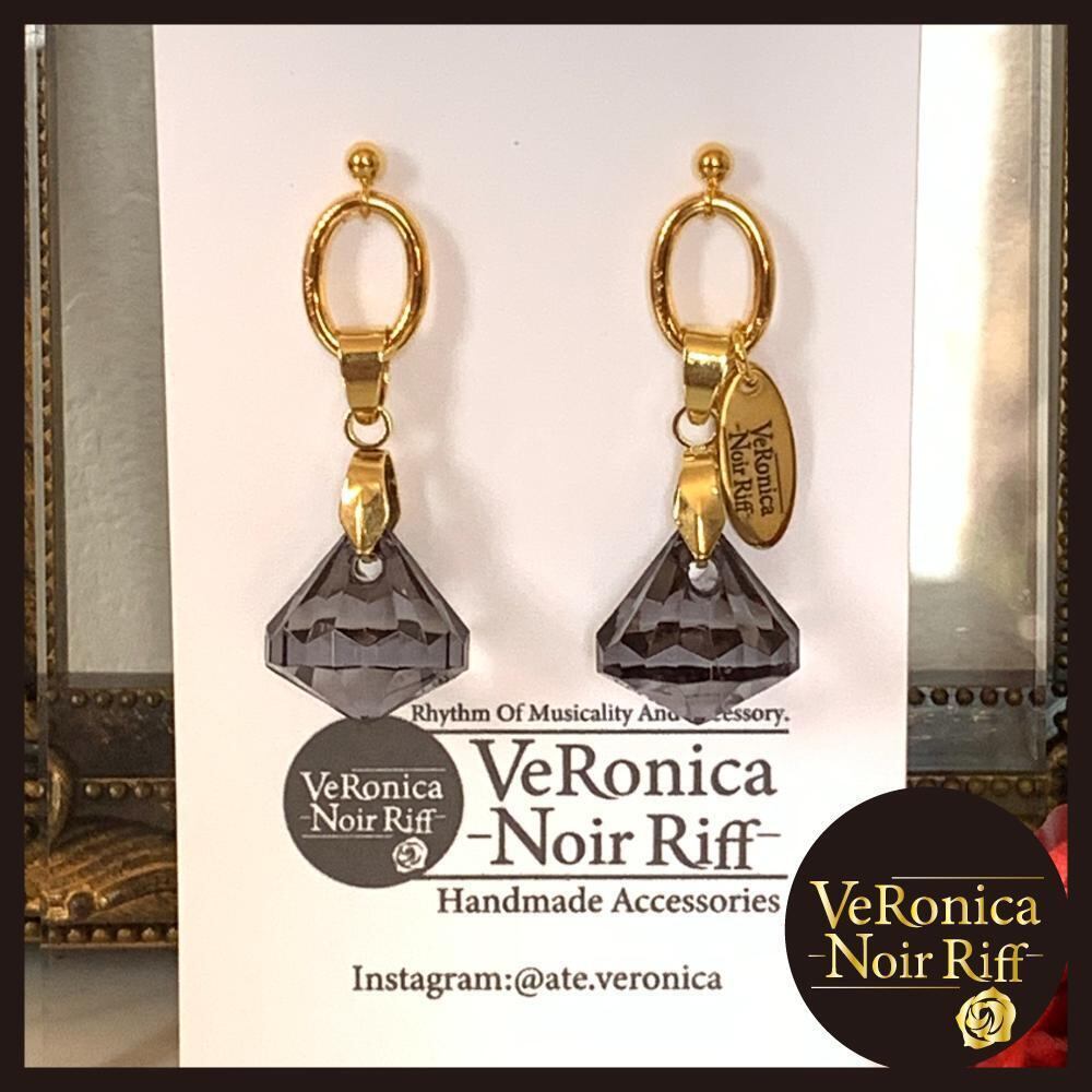 ブラックダイヤピアス ハンドメイド ピアス ビーズ ゴールド クール ステンレス アレルギー ノワールリフ ベロニカ工房