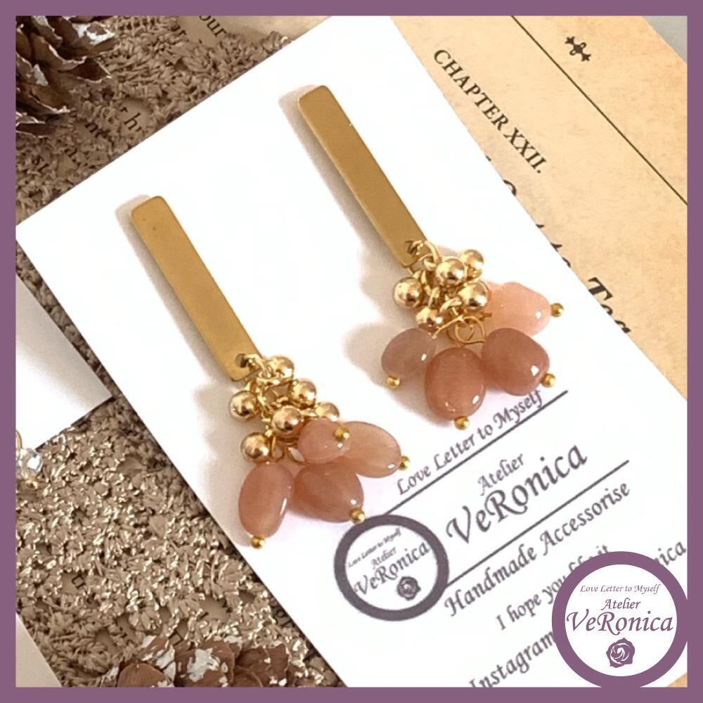 天然石サンストーンのつぶつぶピアス ハンドメイド ピアス サンストーン 天然石 ベロニカ工房