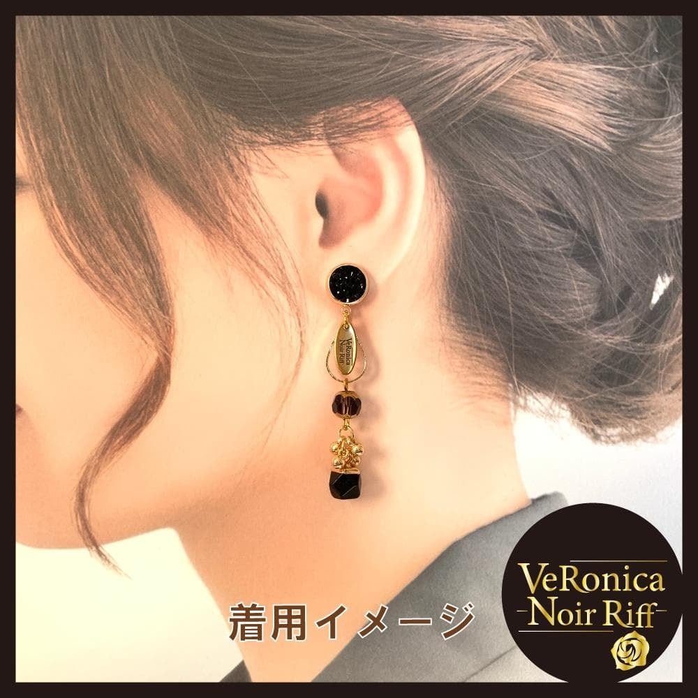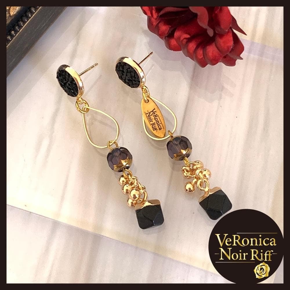 ブラッククールピアス ピアス 18K ビーズ ブラック 黒 ゴールド ノワールリフ ベロニカ工房