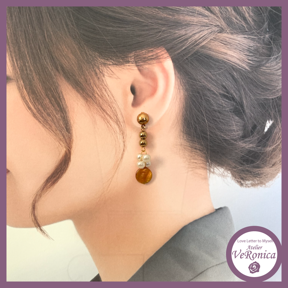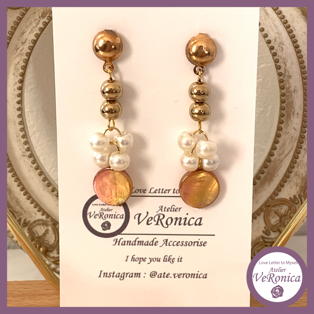 ①湛水パール連のピアス 縦約4cm、横約1cm(スタッド部分サージカルステンレス)