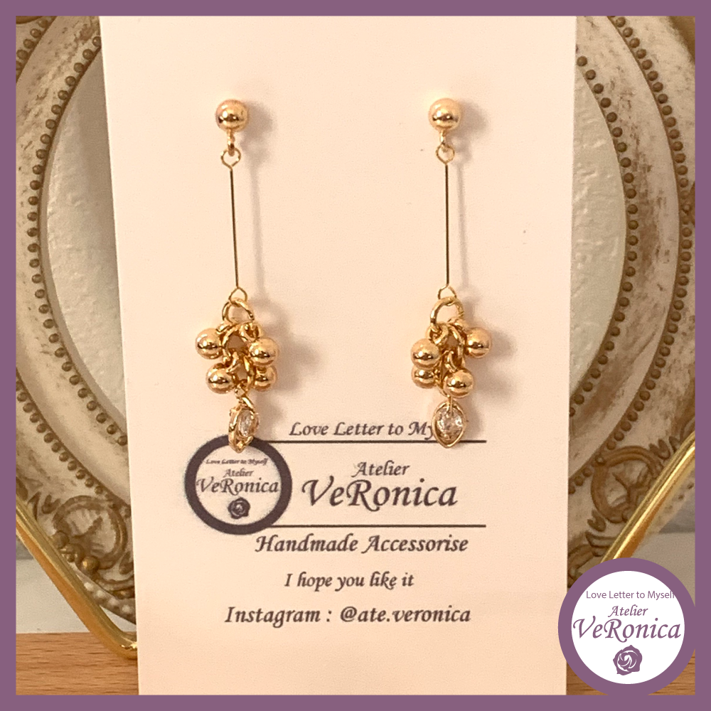②ジルコニア揺れるつぶつぶピアス 縦約4.3cm、横約1cm(スタッド部分サージカルステンレス)