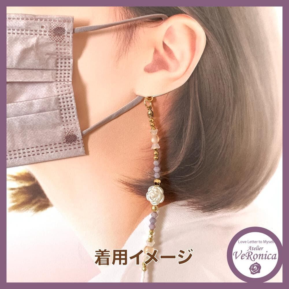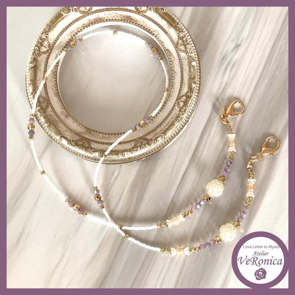 ホワイトローズマスクストラップ メガネストラップ 白 マスクストラップ 薔薇