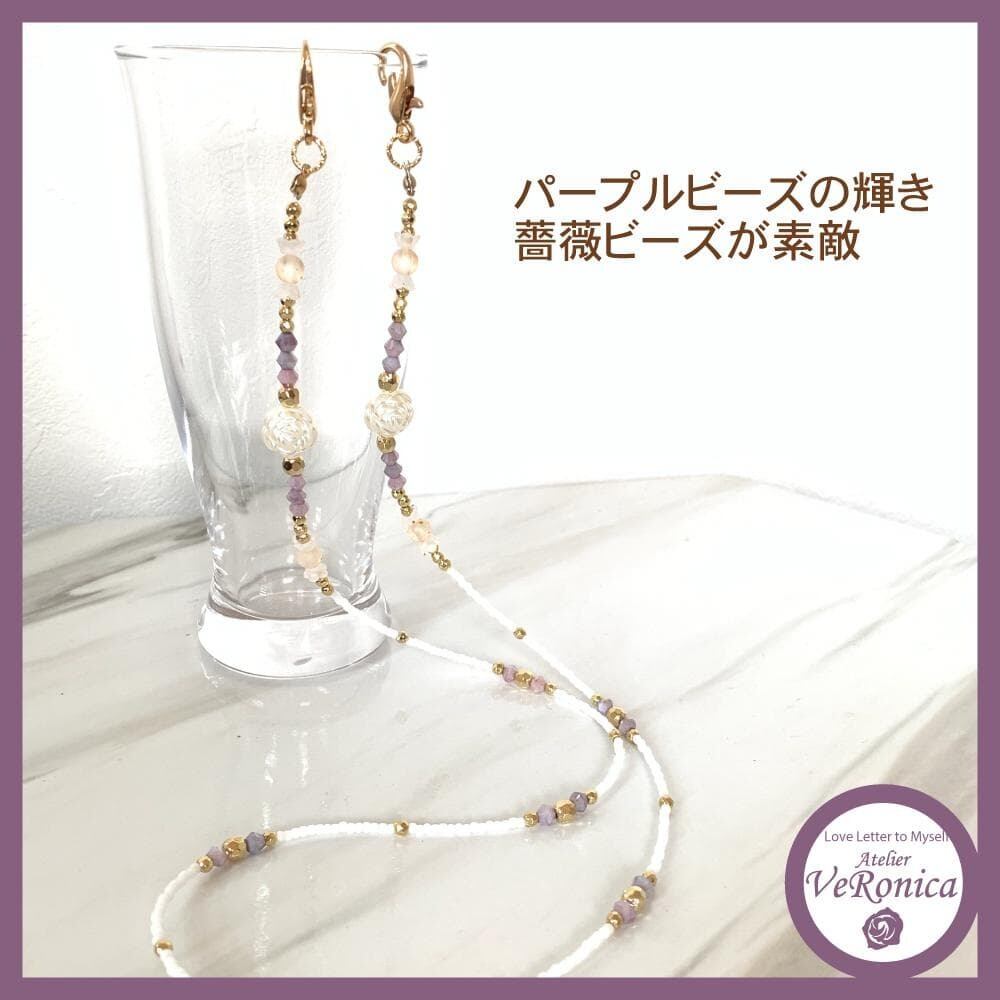 3way マスクストラップ、メガネストラップ、ネックレスとして使える、便利でおしゃれなアイテム。メガネストッパーのゴムもセットです!