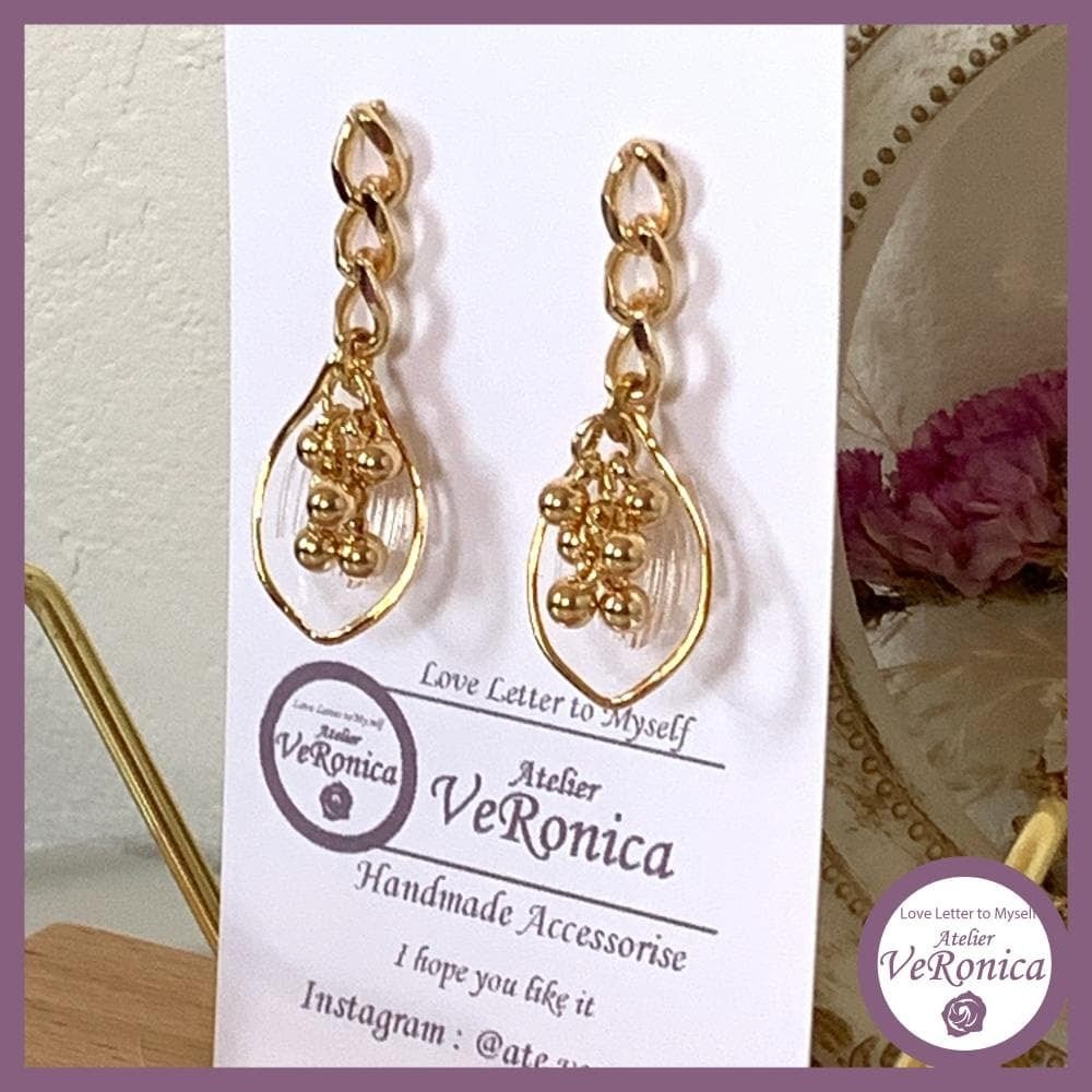 花びらのゴールドピアス ピアス 18K 花びら ゴールド ハンドメイド ビーズ おしゃれ かわいい レディース ベロニカ工房