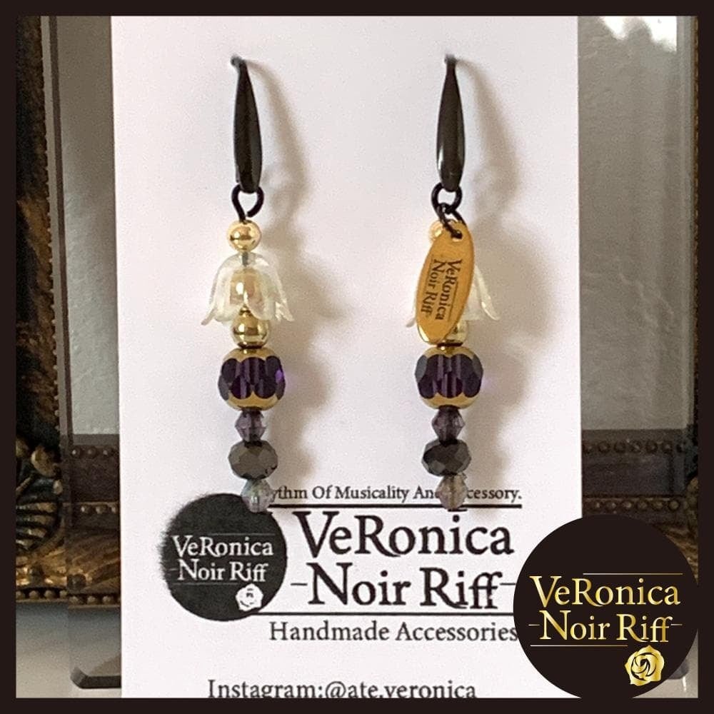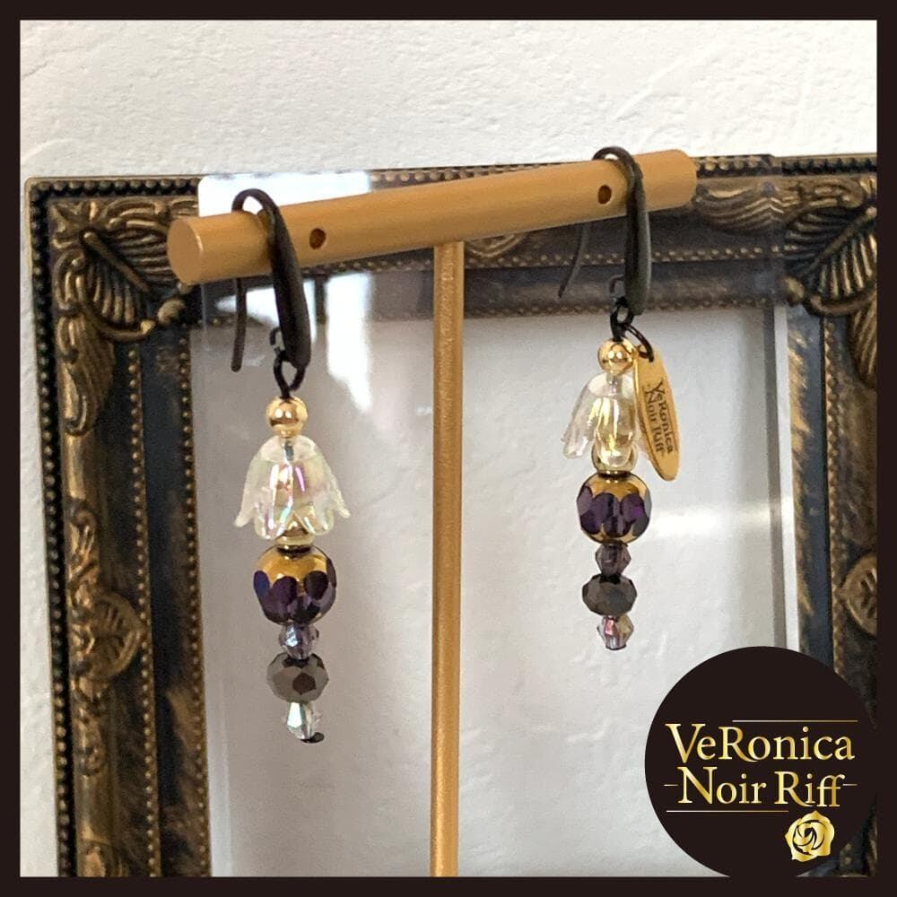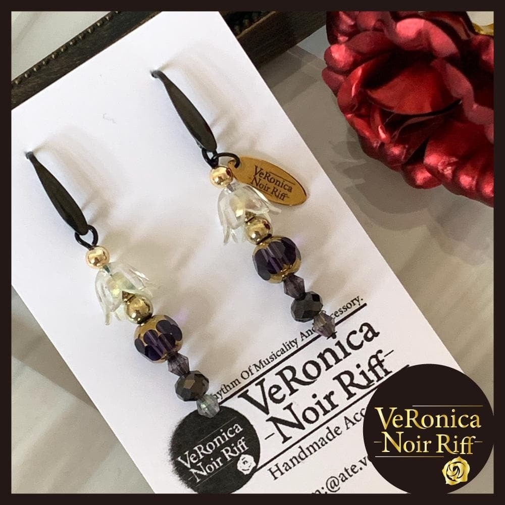 ブラック花弁ピアス ピアス フラワー 花びら 黒 ブラック アレルギー ロック かっこいい レディース ノワールリフ ベロニカ工房