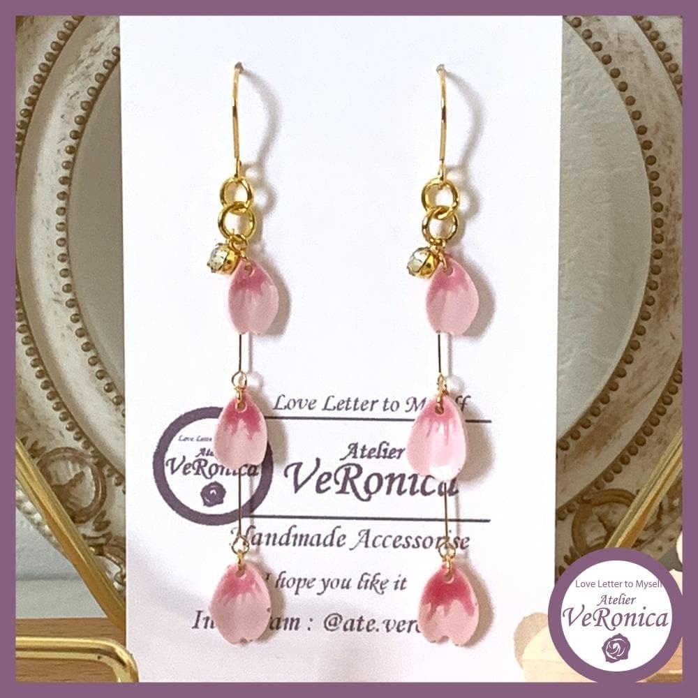 桜の花びらが儚く揺れるピアス。