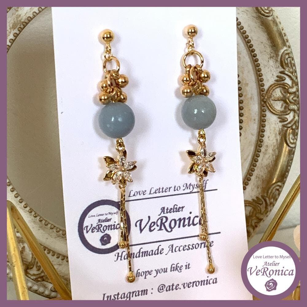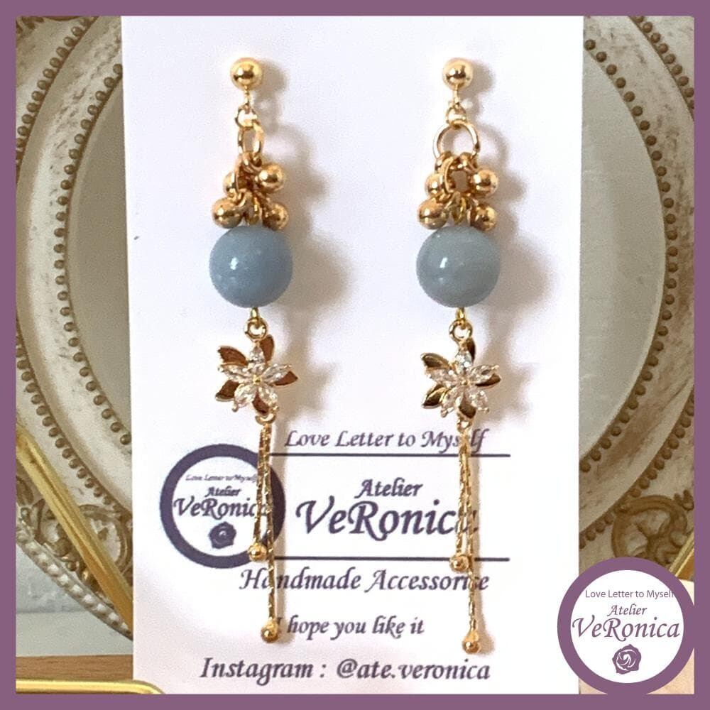 天然石エンジェライトのロングピアス 天然石 水色 ゴールド エンジェライト 花 ビーズ きれい おしゃれ ベロニカ工房
