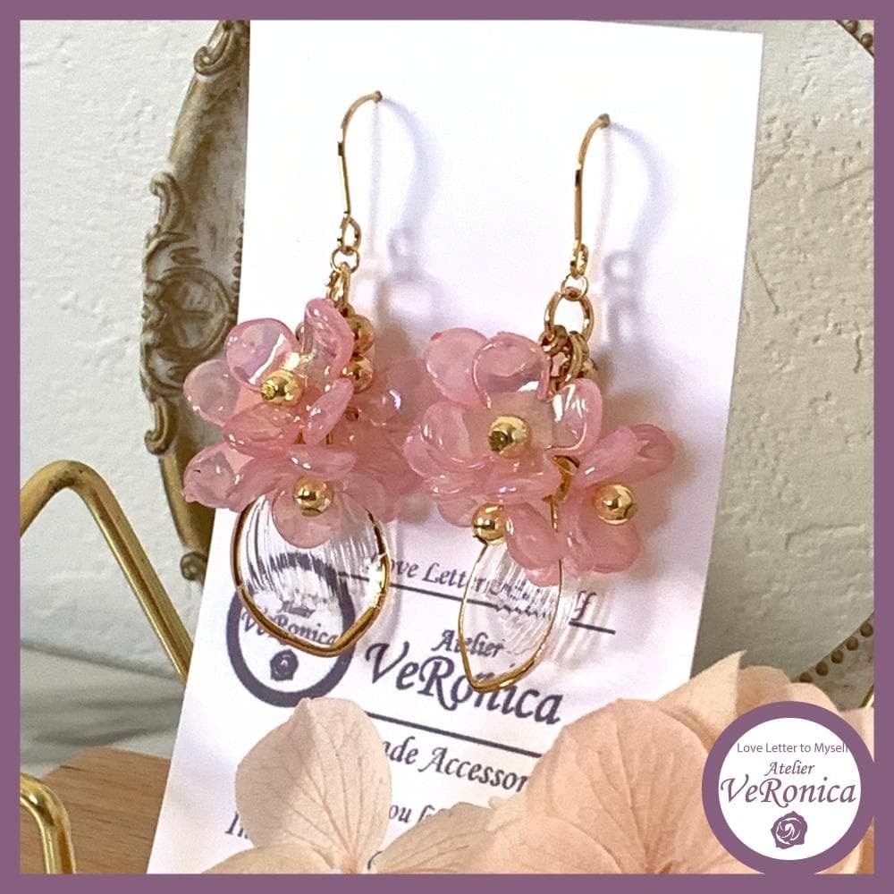 甘すぎない、大人のフラワーピアス ピンク 花 ピアス 金具変更 ビーズ 春 ベロニカ工房
