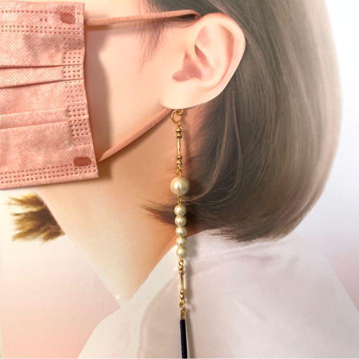 ネイビー★パール連のスマートな2wayマスクストラップ&メガネストラップ