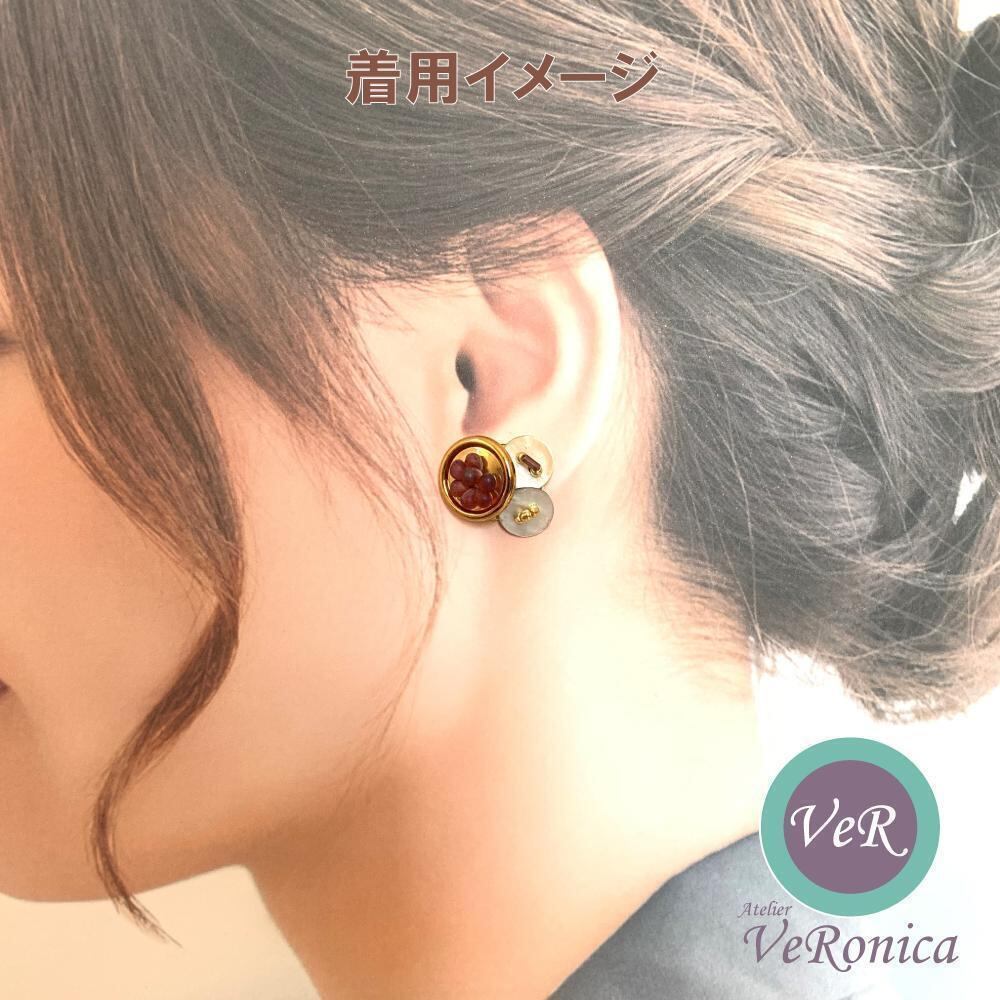 貝ボタンのアシンメトリーピアス ハンドメイド ボタン スタッド おしゃれ