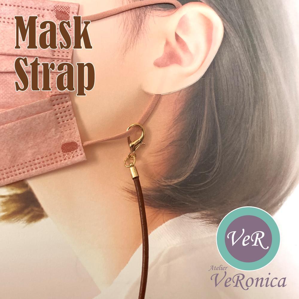 ブラック★2way本革レザーマスクストラップ&メガネストラップ ハンドメイド