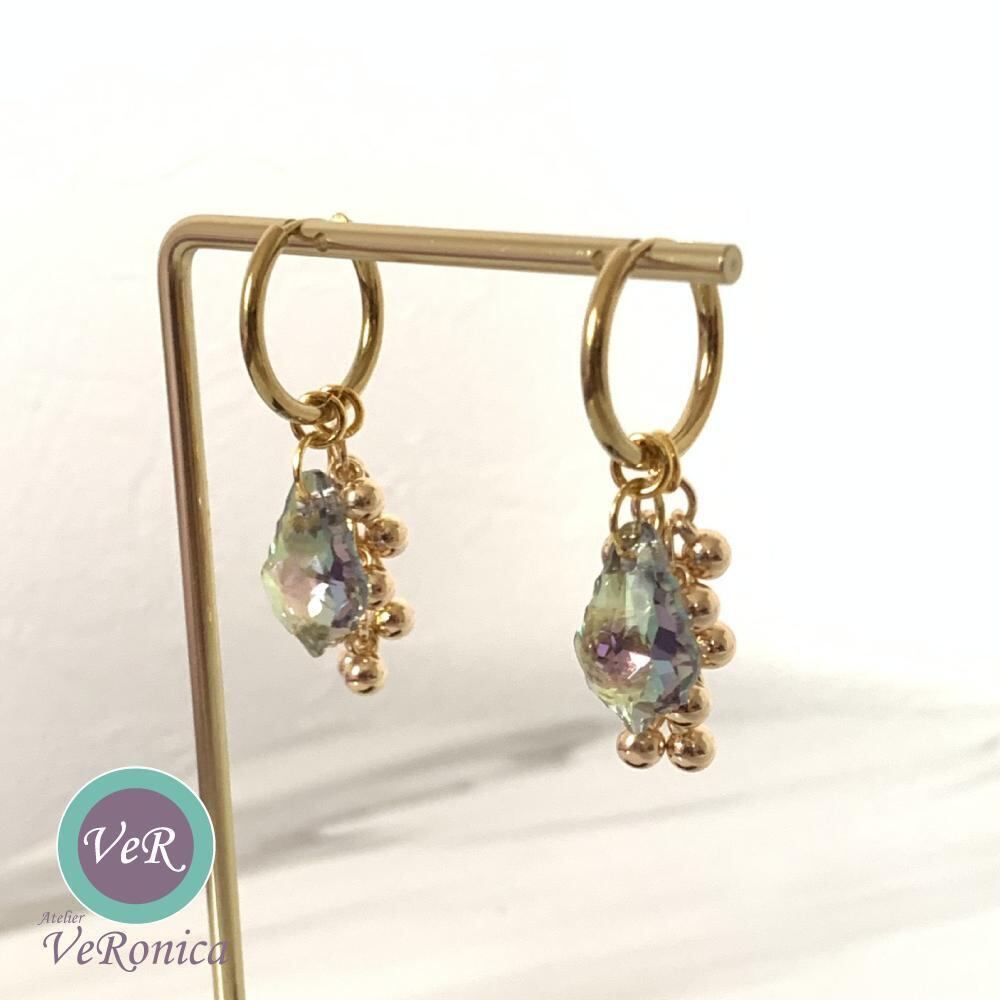 葉っぱのビーズのピアス ハンドメイド ゴールド きらきら ビーズ