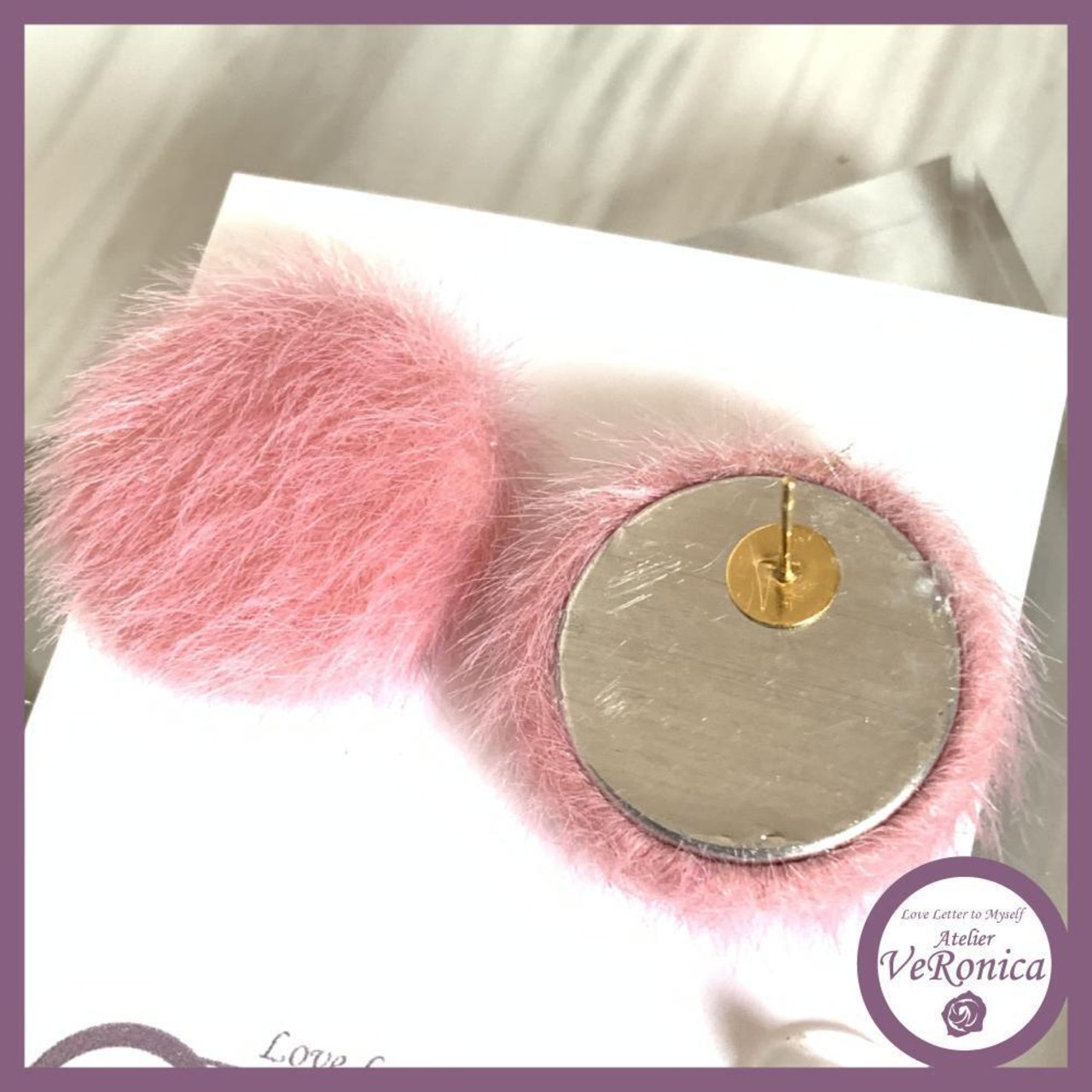 ピンク フェイクファーピアス ハンドメイド イヤリング ファー 秋 冬 おしゃれ