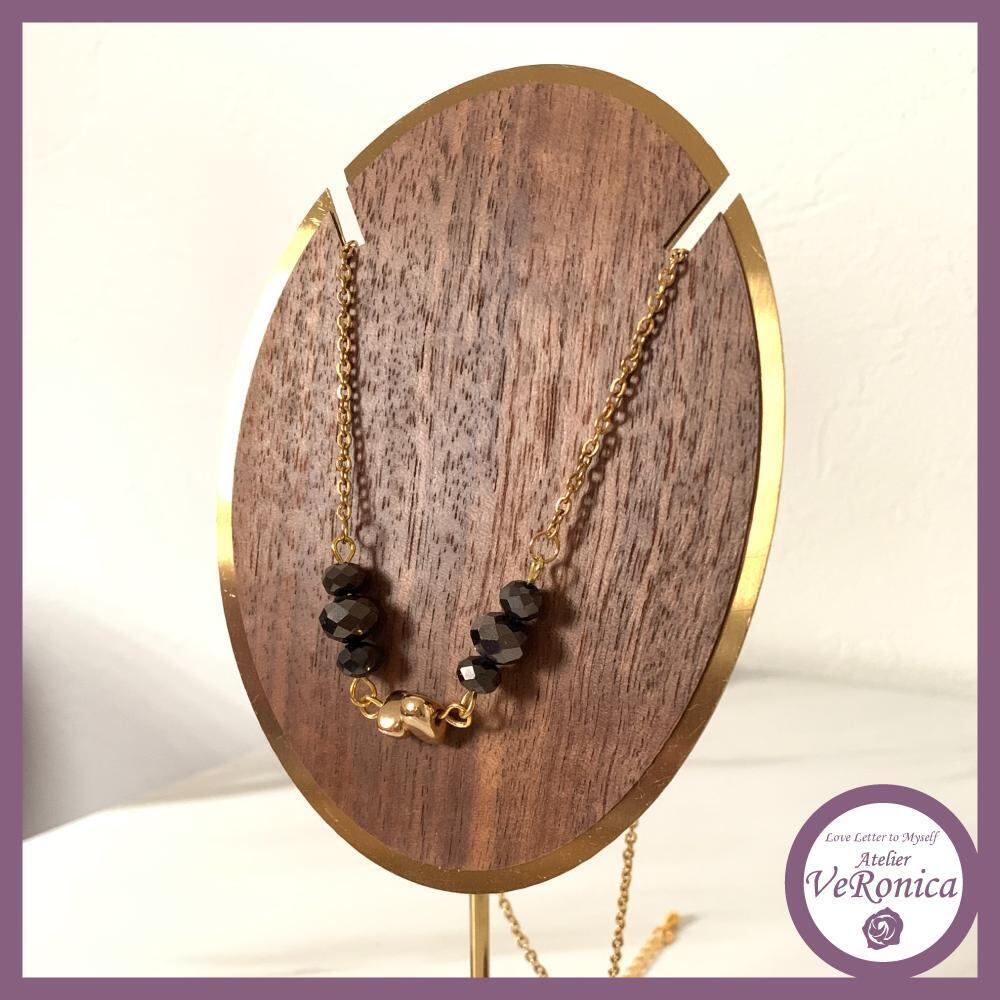 ブラックゴールドの大人ネックレス ハンドメイド ステンレス 短い 40cm アレルギー対応 ベロニカ