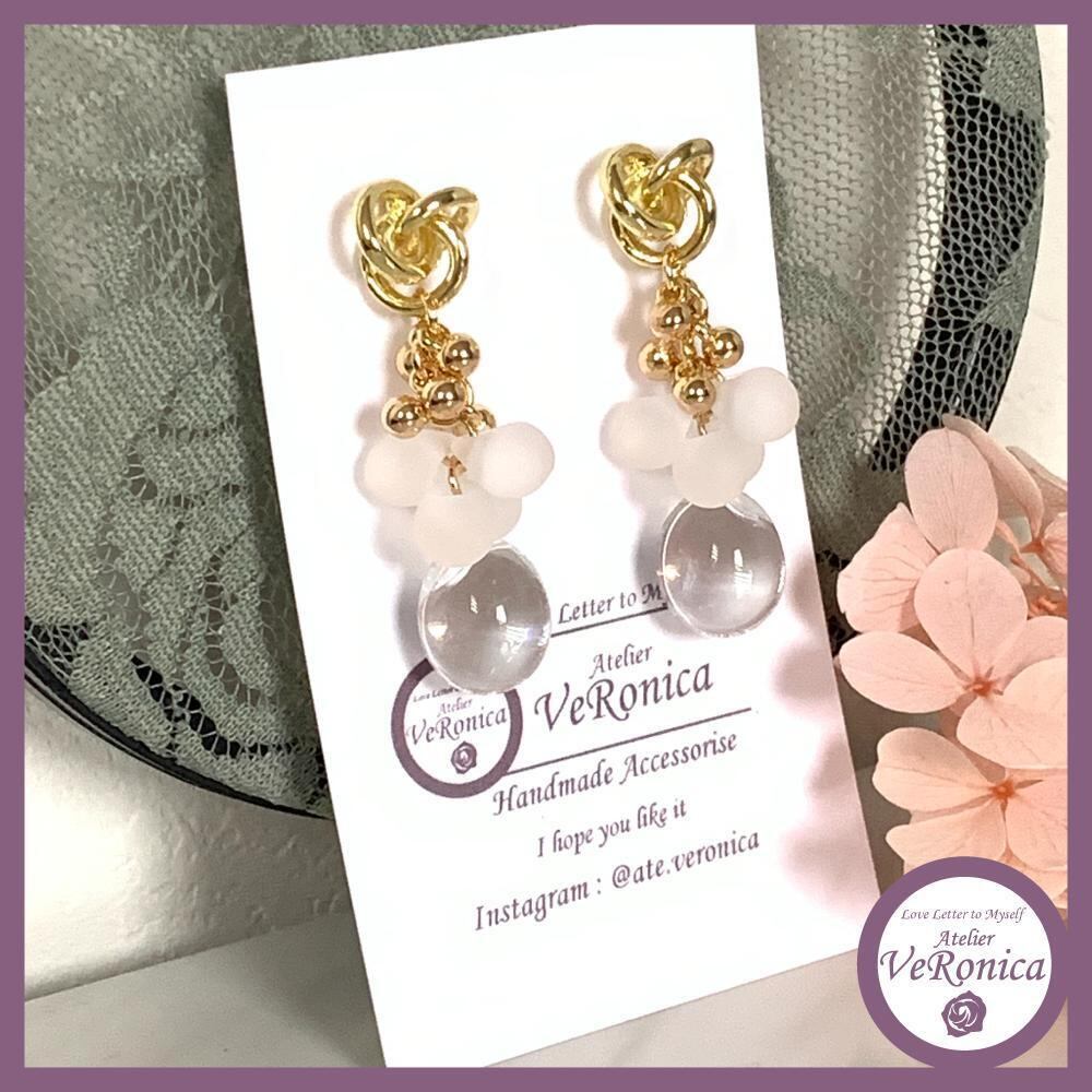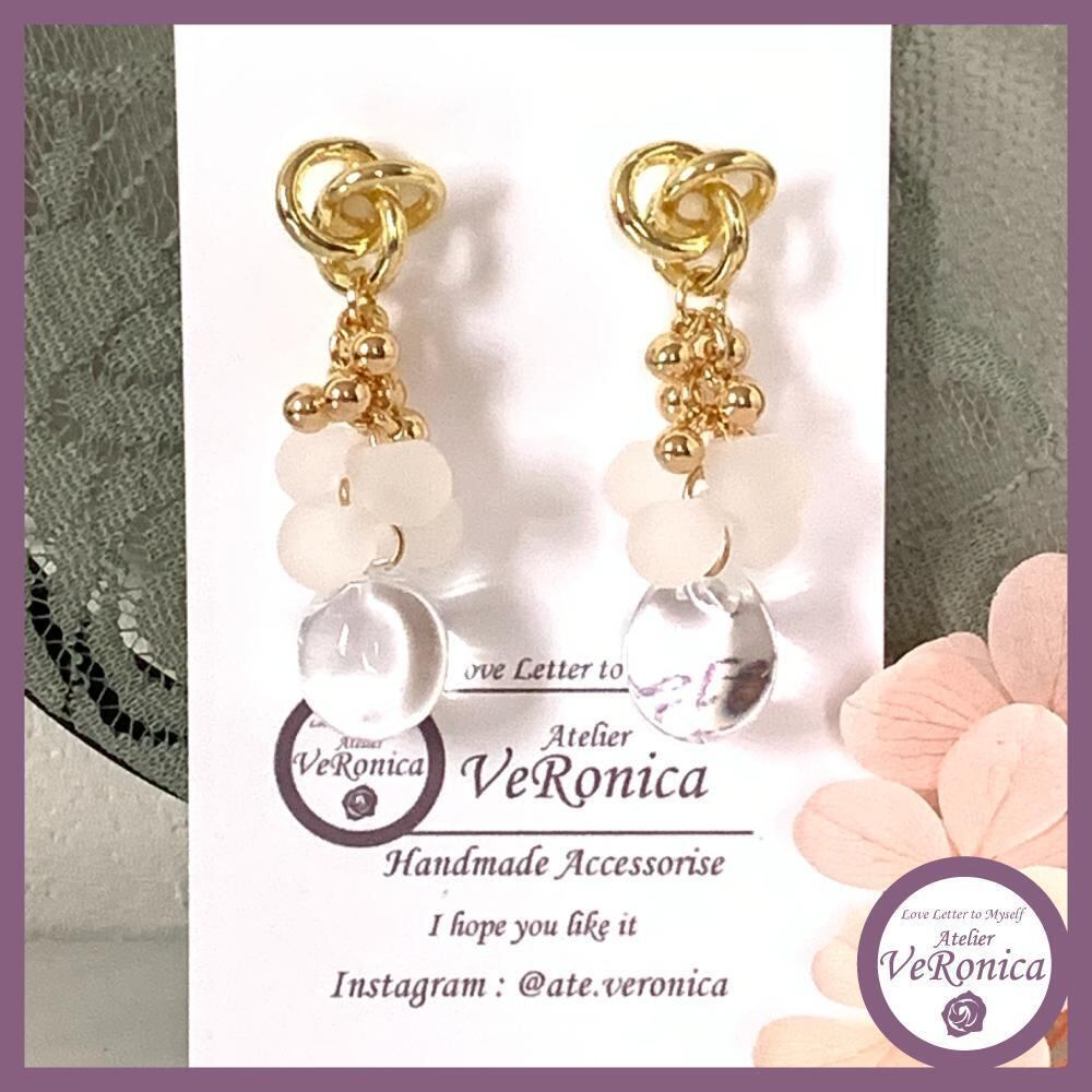 光のつぶつぶピアス ハンドメイド ビーズ しずく 雫 ゴールド 透明 クリア おしゃれ かわいい ベロニカ
